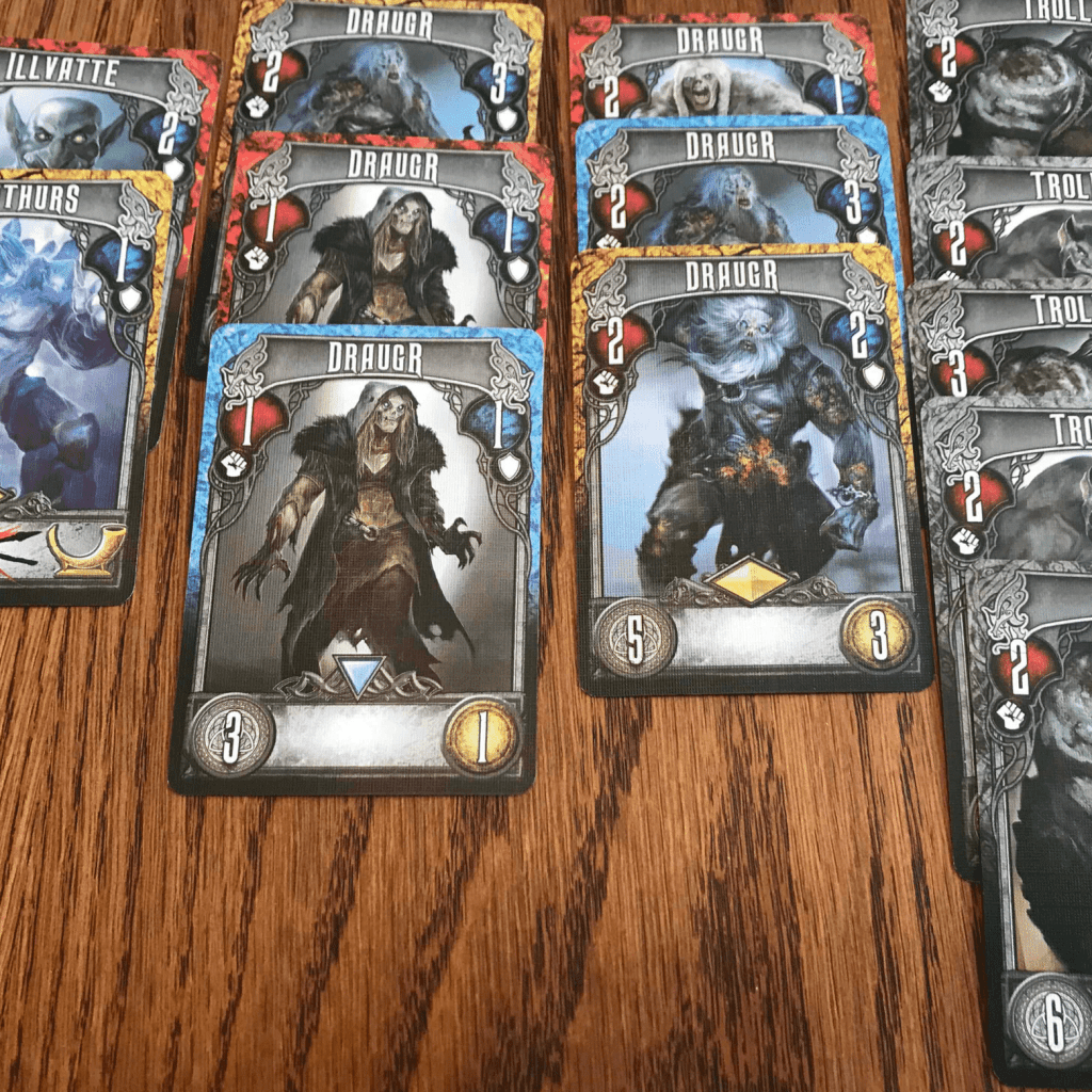 As previously mentioned, blame is a way to lose Glory. Blame happens when one player beats the troll threatening the village and gives blame to the other player(s) because they were ‘blamed’ for not helping defend the village. Or, if no one fights the troll, all players are bad leaders and the village blames them all for failing to defend them. At first, blame may not seem like a big deal. How bad can it get? But the blame can really add up for negative points during scoring so it’s important to make sure you balance the amount of blame you’re getting if you want to be the new Jarl.