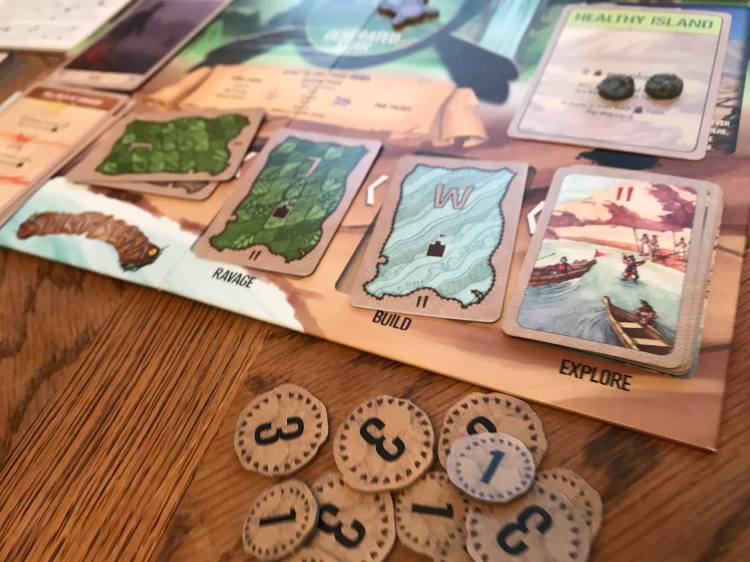 Once any earned Fear Cards have been resolved, the invaders act. This is a three part process dictated by the Invader Cards: ravage, build and explore. When invaders ravage, they deal damage to the land (and any present Dahan) equal to their health: one for explorers, two for towns, and three for cities. If the land suffers at least two damage, it becomes blighted, and a Blight is taken from the Blight Card and placed in that land. Then, if any Dahan survive the invaders’ assault, they can strike back, dealing two damage divided amongst the invaders as the players see fit.