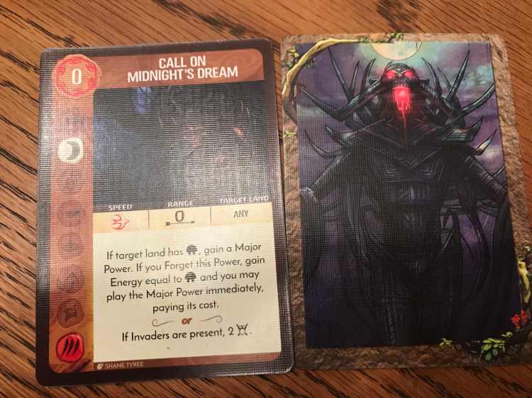 Finally, slow powers will resolve in the Slow Power Phase. Denoted by their turtle icon and blue ring surrounding their energy cost, many slow powers are exceptionally powerful. This is offset by the fact that they only take effect after the invaders have fully completed all of their actions, so often slow powers end up being used reactively instead of proactively, especially in the early game.