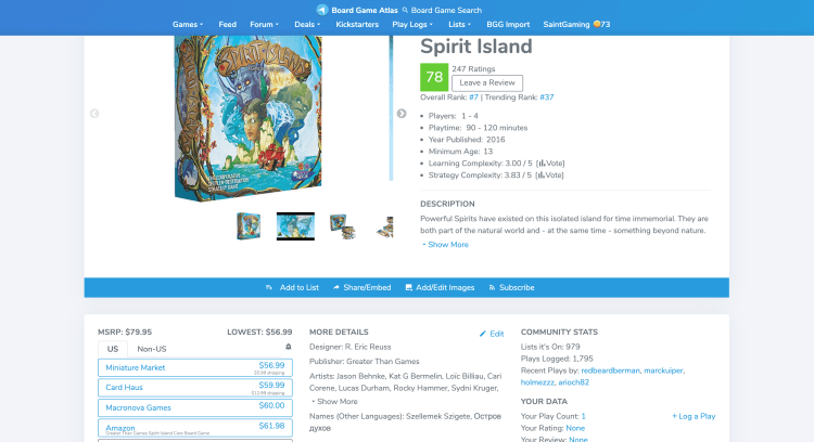 There’s a lot to unpack with both of these websites, and since these blog posts are meant to be short and sweet, there’s no way to cover everything. I plan on doing a longer, more in-depth discussion of both websites at a later date. For this post, I’m only going to talk about the features both sites offer that are beneficial to people looking to buy new/more board games.