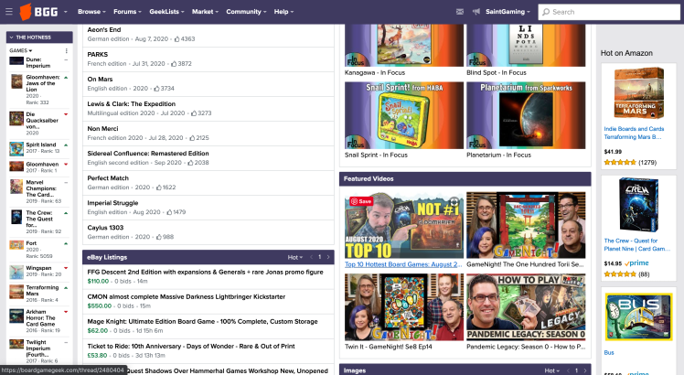 When you’re not shopping for a specific game, you can still get help with finding some games to consider by signing up for the free membership offered by each site and utilizing their forums. You can create forum posts and ask questions. For example, let’s say you love Champion of Midgard by Grey Fox Games and are looking to find another worker placement game that has a strong theme but maybe is a mid-weight game this time. You can just ask on the forum for recommendations. There are probably other players who have had similar questions so you may even be able to find an existing forum thread with existing recommendations. Both websites also feature lists of what are the current popular games that you can check out as well, if you don’t have a specific game in mind.