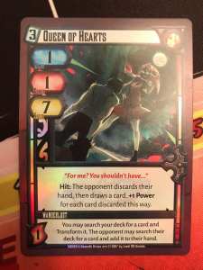I decided to initiate with Sweep. Jess set an EX attack in response. On the reveal, it was my Sweep into her EX Focus. She weathered my 6 Power attack and struck back with 5 damage for exactly lethal! The game was hers. As we were resetting for the next game, Jess revealed her hand; no Queen of Hearts. She had taken a line of play which represented to me that she had the ultra, and as a result, I played right into her hands.