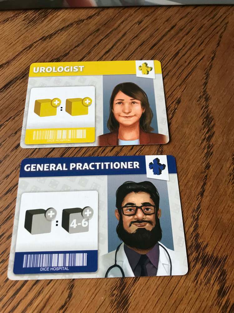 Dice Hospital does have some optional play choices. There are the Hospital Administrators, which the rulebook recommends not using the first time you play, but encourages you to use them for all future game play. The Administrators give each hospital a unique ability, some related to discharge scoring and some related to patient neglect. Another variant of play is using the Event Cards. The event cards add different effects to the game: some are immediate and some last the entire round.